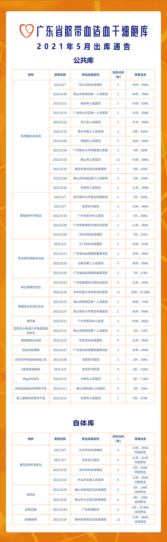 【出库通告】广东省脐血库2021年5月出库通告