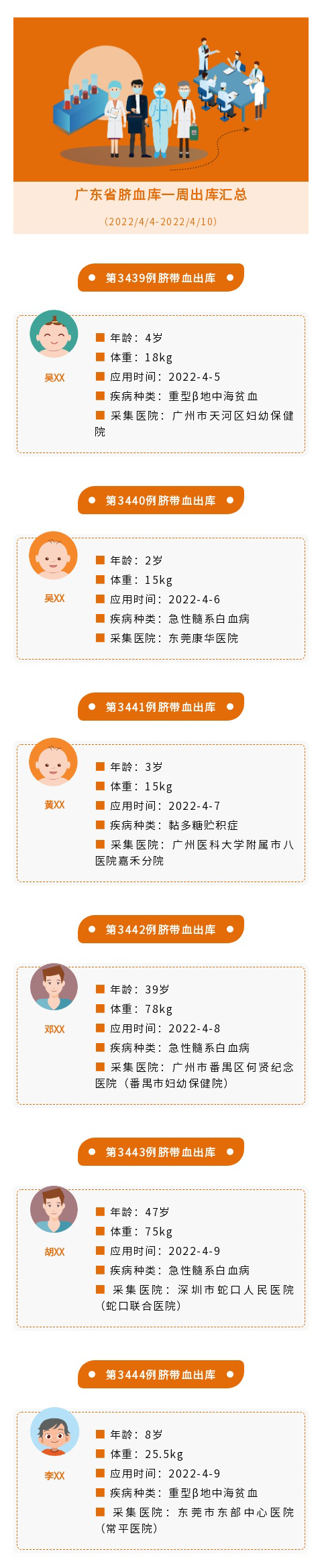 本周共出库6份脐血用于多种疾病的临床应用,主要包括重型β地中海贫血、急性髓系白血病、黏多糖贮积症及急性髓系白血病等疾病治疗。