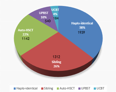 中国造血干细胞移植领军人物,中华医学会血液学分会主任委员黄晓军教授作了相关专题讲座。他提到,我国造血干细胞移植稳定增长,比较2014年和2015年的统计数据可以发现,2014年全国纳入统计的64家移植中心上报了4418多例,2015年全国有78家中心纳入统计,累计完成各类造血干细胞移植例数达到5177例,其中脐血移植(UCBT)占比由2014年的2%增长至2015年的近4%(图1)。2016年造血干细胞移植上半年已完成约3000例,2016全年预计可达6000例,其中脐血移植已完成93例,2016年有望突破200例。