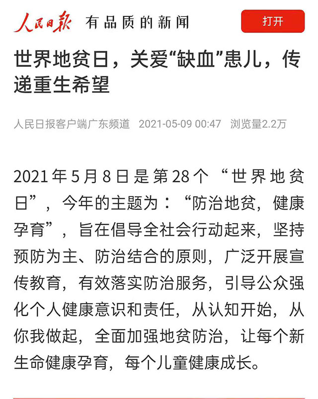 2021年5月8日是第28个“世界地贫日”,今年的主题为:“防治地贫,健康孕育”,旨在倡导全社会行动起来,坚持预防为主、防治结合的原则,广泛开展宣传教育,有效落实防治服务,引导公众强化个人健康意识和责任,从认知开始,从你我做起,全面加强地贫防治,让每个新生命健康孕育,每个儿童健康成长。