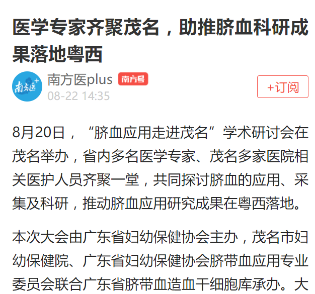 8月20日,“脐血应用走进茂名”学术研讨会在茂名举办,省内多名医学专家、茂名多家医院相关医护人员齐聚一堂,共同探讨脐血的应用、采集及科研,推动脐血应用研究成果在粤西落地。