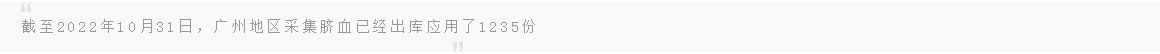 近年来,广东省脐血保护工作持续向好,广东省脐血库已经在全省21个地级市200多家医院建立起立体采集网络。截至2022年10月31日,广州地区采集脐血已经出库应用了1235份。