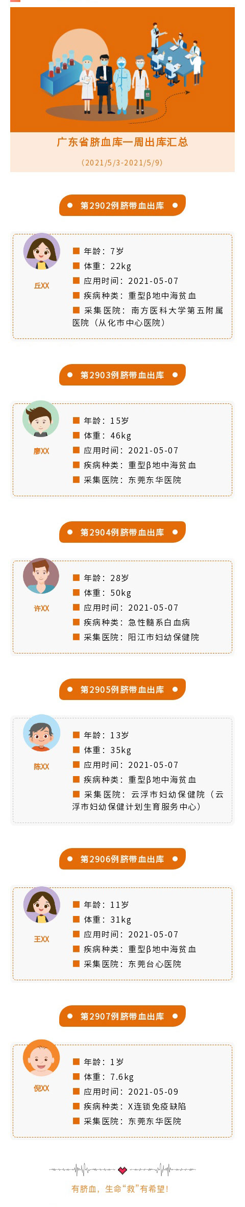 广东省脐血库2021年第十九周出库汇总