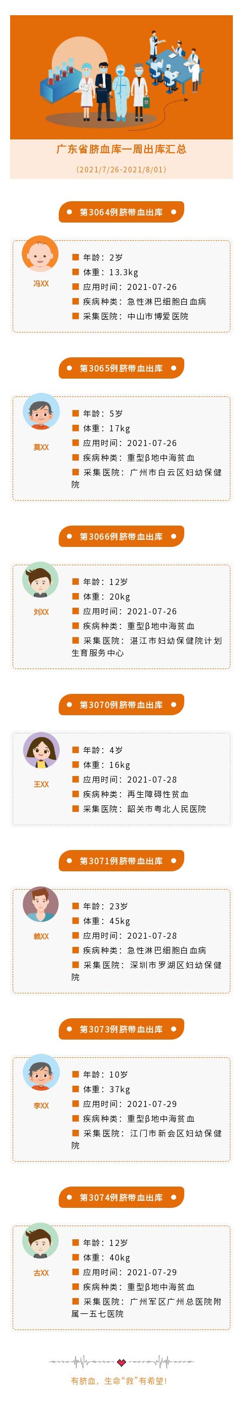 广东省脐血库2021年第三十一周出库汇总