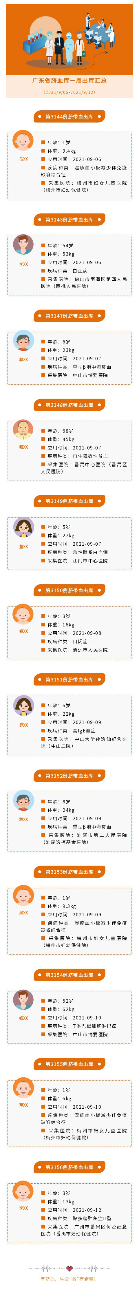 广东省脐血库2021年第37周出库汇总