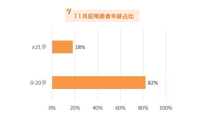11月应用患者最大年龄为58岁,最小年龄为1岁。