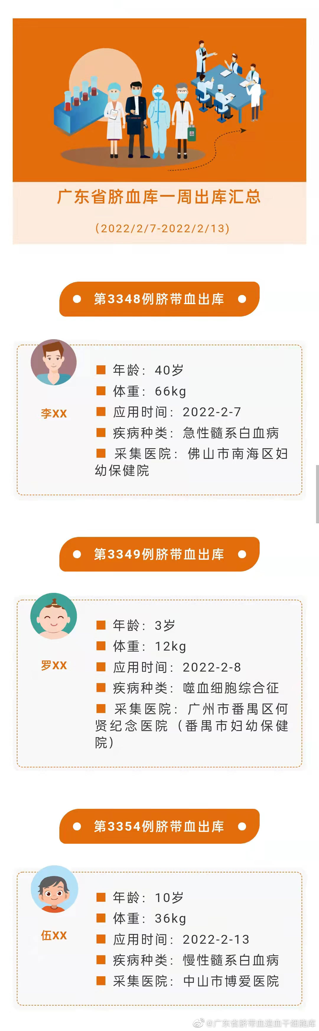 广东省脐血库2022年第6周出库汇总