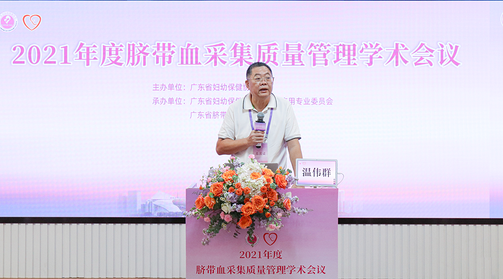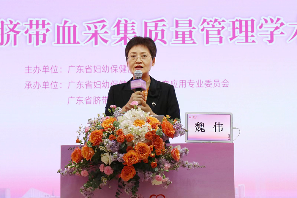 图为广东省脐血库主任、广东省妇幼保健院原副院长王颀致辞