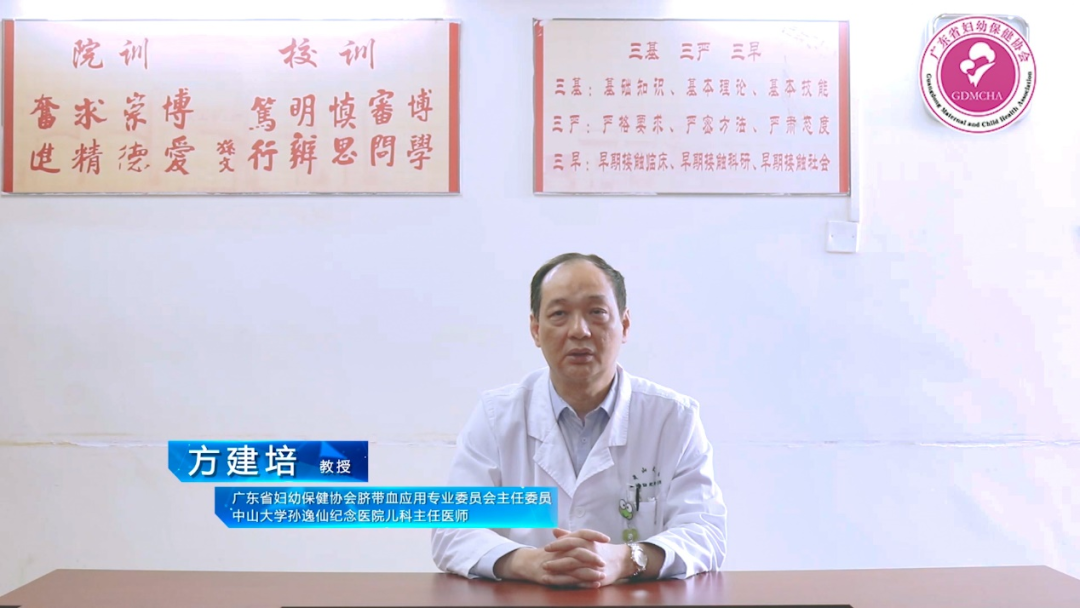 图为广东省妇幼保健协会脐带血应用专业委员会主任委员、中山大学孙逸仙纪念医院儿科主任医师方建培教授以线上方式致辞