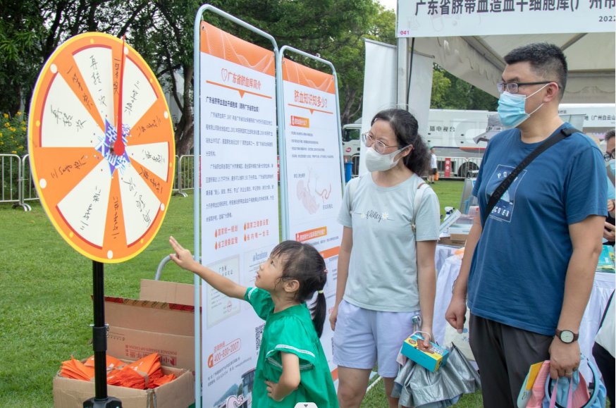 “恭喜你,一等奖!”在一阵热烈的欢呼声中,参与者兴奋地从工作人员手里接过广东省脐血库定制的益智拼图。一大早,广东省脐血库的科普展位前便人流络绎不绝,吸引人的不只是有趣的互动游戏、丰盛的奖品,还有丰富的脐血知识。