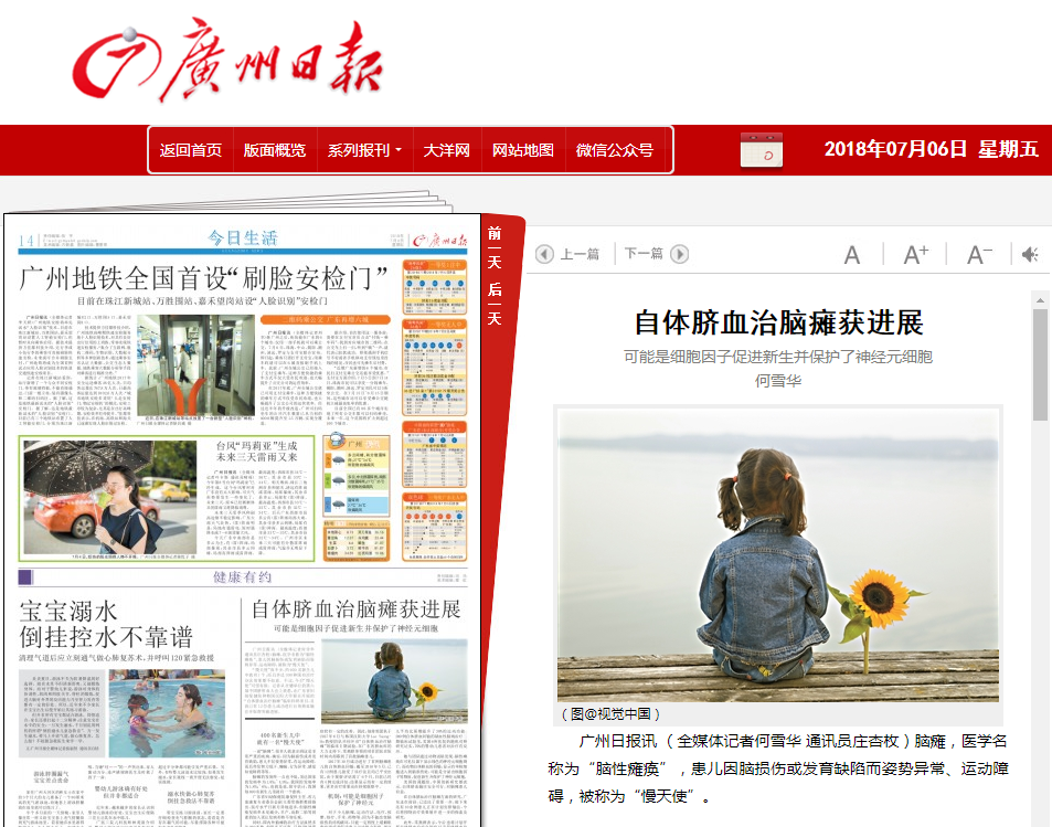 在自体脐血治疗脑瘫方面的研究,广东走在前沿,已迈出了重要一步,接下来还有10余例患儿正在计划安排输注,今后将围绕治疗效果展开进一步的探索及研究。