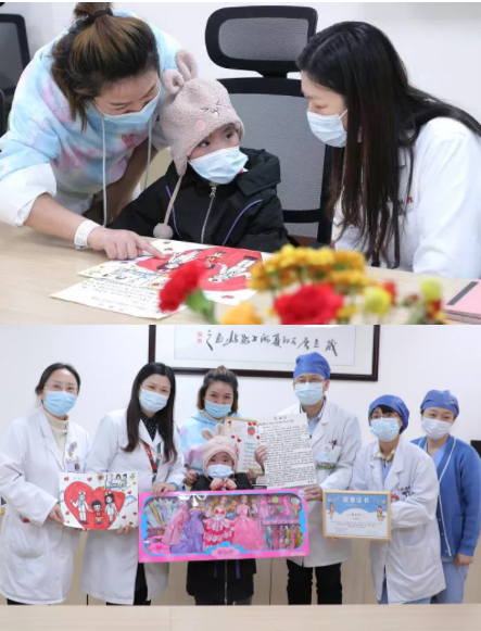 2021年11月25日,在复旦大学附属儿科医院,医护人员为7岁女孩琪琪(化名)举办了一场顺利出院获得新生的庆祝仪式。