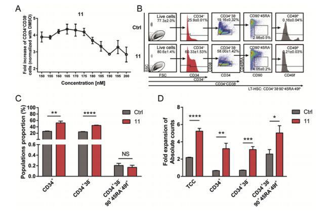 analog 11导致显著的造血干细胞体外扩增效应,具有很强的长期造血干细胞扩增活性