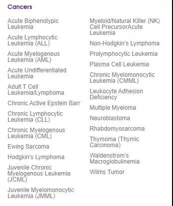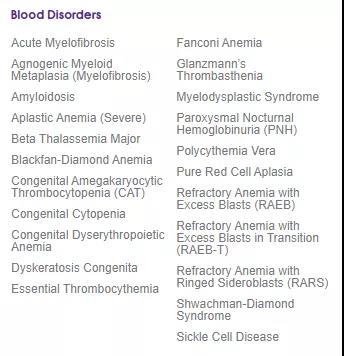 在CBR的官网上列出了脐带血目前被用于治疗的80多种疾病,分为四大类:良性血液疾病、癌症、免疫疾病和代谢疾病。