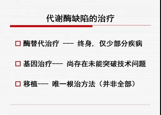 陈静教授指出,随着基础研究的不断进展,先天代谢异常的检出率逐年提高,迄今已发现了500多种先天性遗传代谢病。随着遗传基因的筛查,使得遗传代谢病被越来越早的发现,但是治疗此类疾病是个问题。除了少数几种可以通过饮食干预、酶替代治疗外,多数缺乏有效根治性措施。