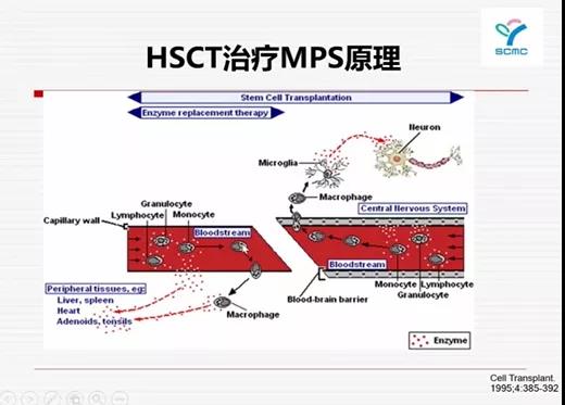 陈静教授指出,目前可移植治疗的先天性代谢性疾病约有20多种,造血干细胞移植(HSCT)具有一定优势。以黏多糖贮积症的治疗为例,酶替代治疗一般是通过血管到组织,但到不了中枢,而造血干细胞移植是通过单核细胞迁移到组织,转化为少突胶质细胞,对中枢的改善与酶替代相比有明显优势。